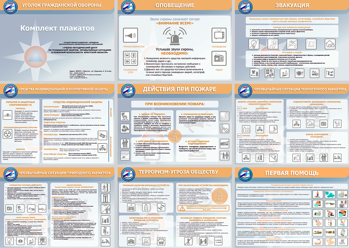 Комплект плакатов «Уголок гражданской защиты» формат А3 10 листов