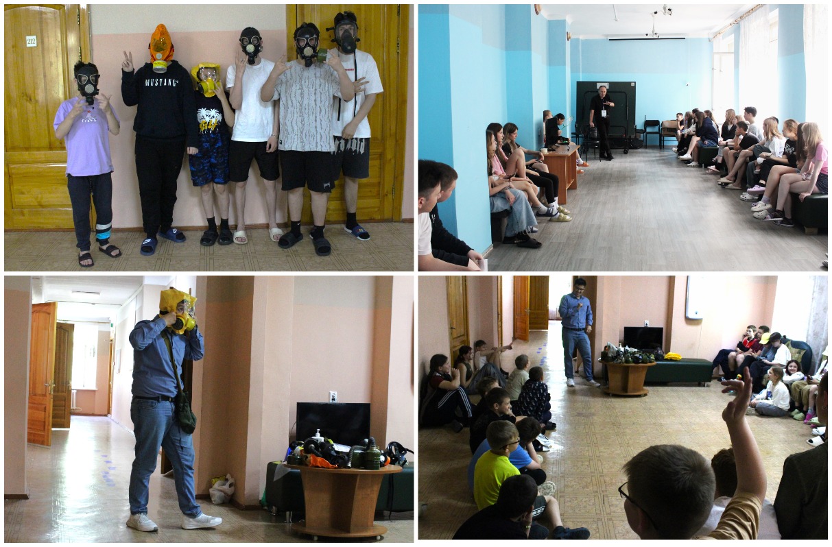 Преподаватель УМЦ Хрунь Константин Петрович рассказал в каких ситуациях применяются СИЗы, продемонстрировал, как правильно использовать различные средства защиты, такие как: маски, самоспасатели, противогазы. Дети активно участвовали в обсуждении, задавали вопросы, учились определять свой размер и тренировались надевать противогазы.