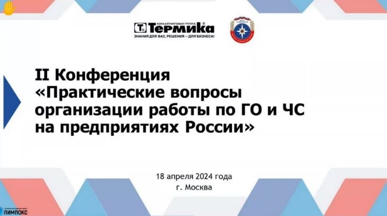 18 апреля 2024 г. педагогические работники УМЦ в режиме онлайн приняли участие в II Конференции «Практические вопросы организации по ГО и ЧС на предприятиях России», организованной КГ «ТЕРМИКА» совместно с Институтом развития МЧС России ФГБВОУ ВО «Академия гражданской защиты МЧС России».